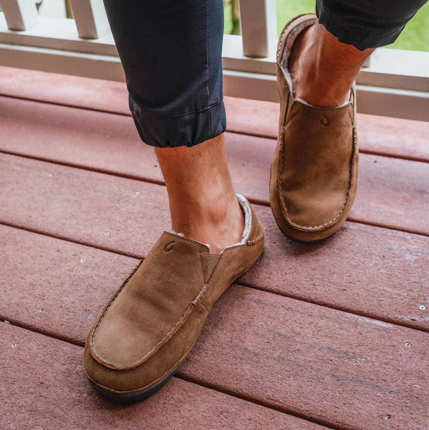 When the surf is up or it’s time for a fresh cup from the café, slip out of the house without slipping off Kīpuka Hulu—a casual, on-the-go slipper sporting premium nubuck leather and soft shearling lining with a wrapped rubber toe and heel will even protect you on everyday adventure past the welcome mat.